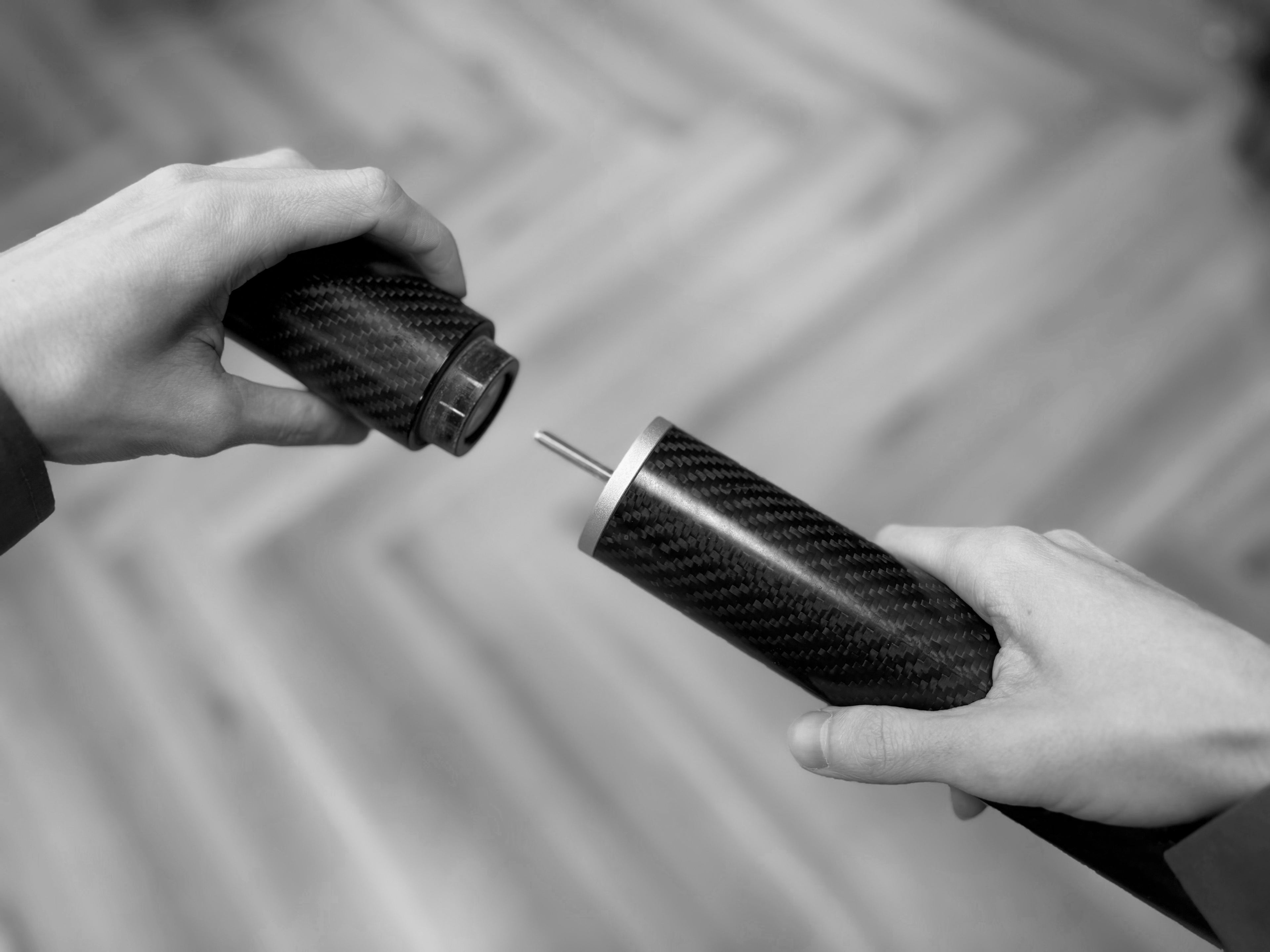 The Karbon Mill is a premium carbon fiber salt and pepper mill made from materials typically used in aerospace.
